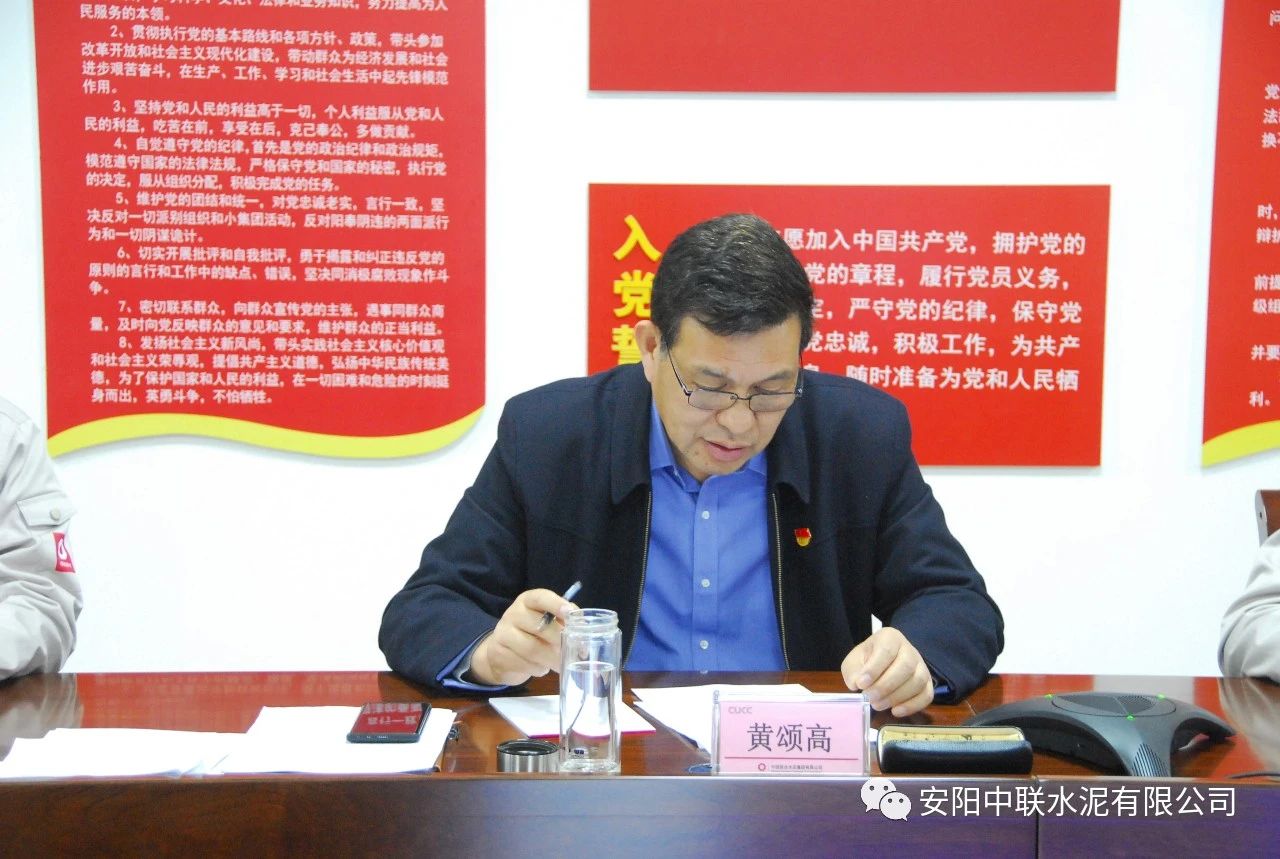 最后,黄颂高代表领导班子作表态发言。黄颂高表示,安阳k8凯发将在中国联合水泥、河南运营管理区的正确领导下,以此次民主生活会为契机,紧紧围绕中国联合水泥下达的年度目标任务和政治巡视整改工作安排,着力谋划好公司党的建设和“水泥+”一体化经营发展大计,加强科学谋划,深化改革创新,抢抓机遇,坚定信心,迎难而上,确保全年各项目标任务如期完成,以优异的成绩迎接建党100周年。